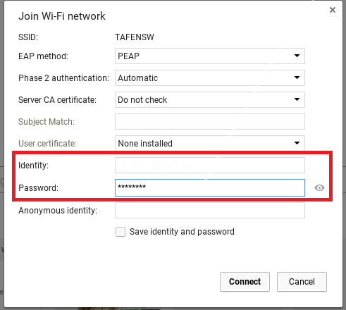 If you still can't connect to the TAFE NSW Wi-Fi after following these instructions, try the More Help for Chromebook box on this page.